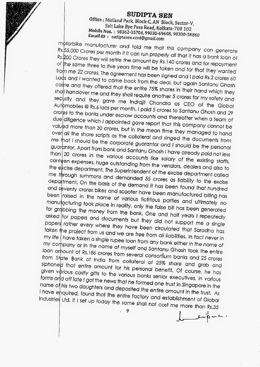 ''সততার প্রতীক" ঢক্কানিনাদে ঐ মিথ্যাচারীকে তুলে ধরতে অর্থের সংস্থান করতে এগিয়ে এল সেই গরীব মানুষের সঞ্চয় অপহরণকারী চিটফান্ড সংস্থাগুলি! হাতেনাতে তার সুফলও পেল চিটফান্ড সংস্থাগুলি! ক্ষমতায় উত্তরণের সঙ্গে সঙ্গেই শাসকদলের মন্ত্রী নেতাদের যোগসাজশে চিটফান্ড সংস্থাগুলি বহুগুণ বাড়িয়ে ফেলল তাঁদের ব্যবসা। সর্বস্বান্ত হল বাংলার জনগণ!